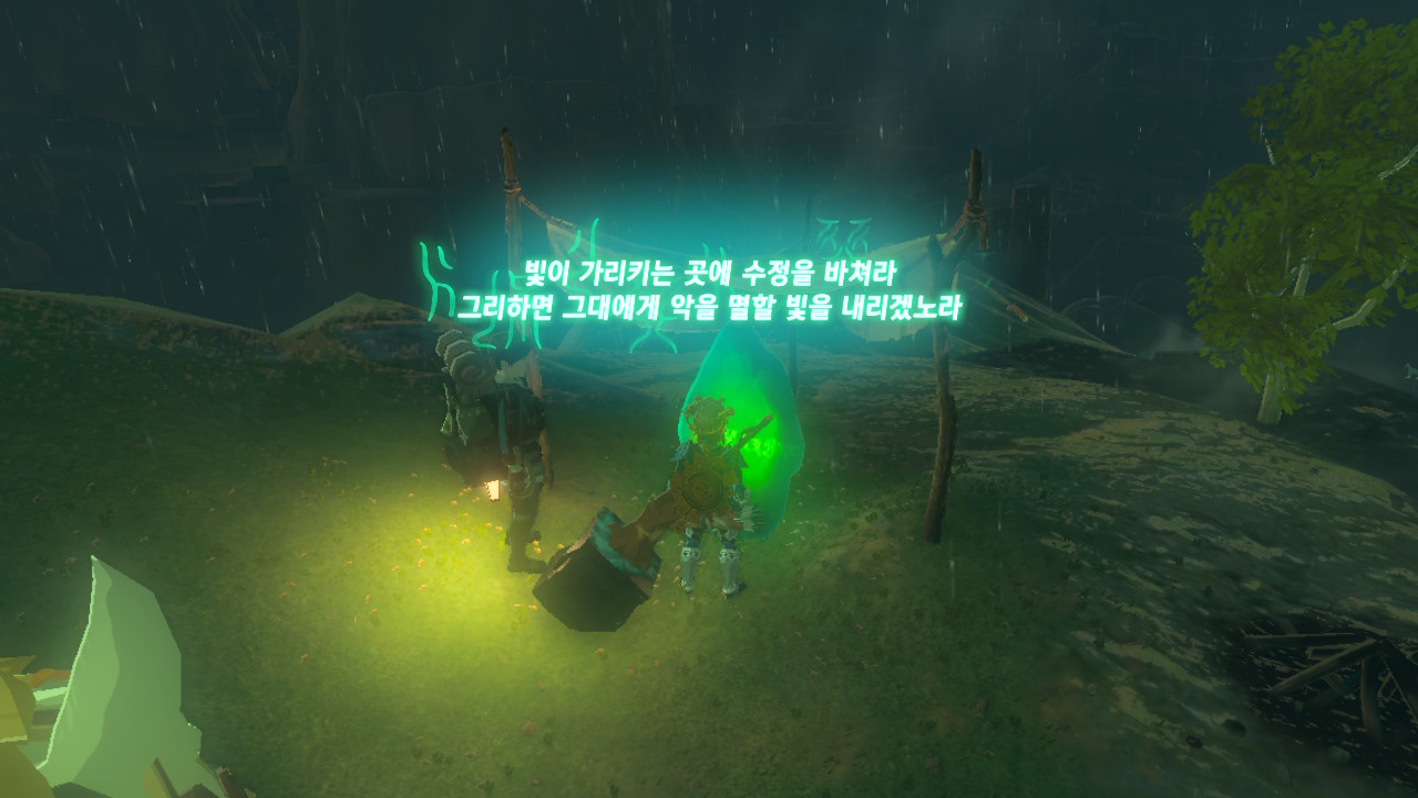 A버튼으로 수정을 조사하면, 빛으로 사당 위치를 표시해줍니다.
