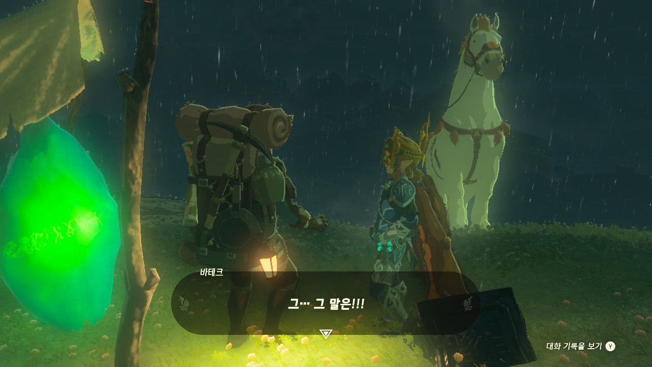 그럼 빛나는 수정이 보이는데, 그 옆에 서있는 바테크에게 말을 걸어주세요.