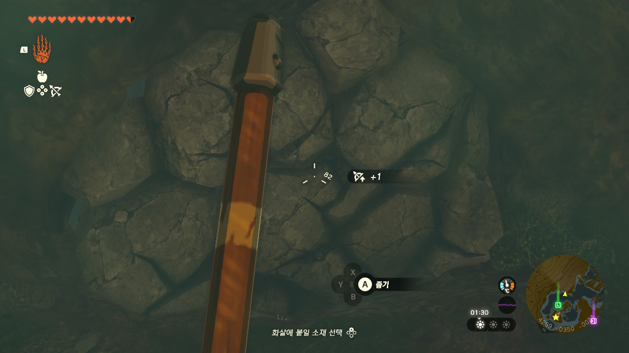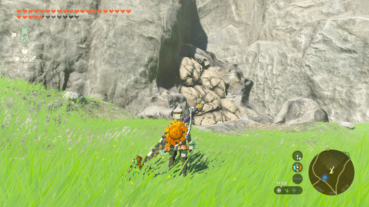슈트는 하이랄 평원 풀피리의 언덕의 동굴에 있습니다.동굴이 바위로 막혀있으니 부셔주시고 들어가야합니다.