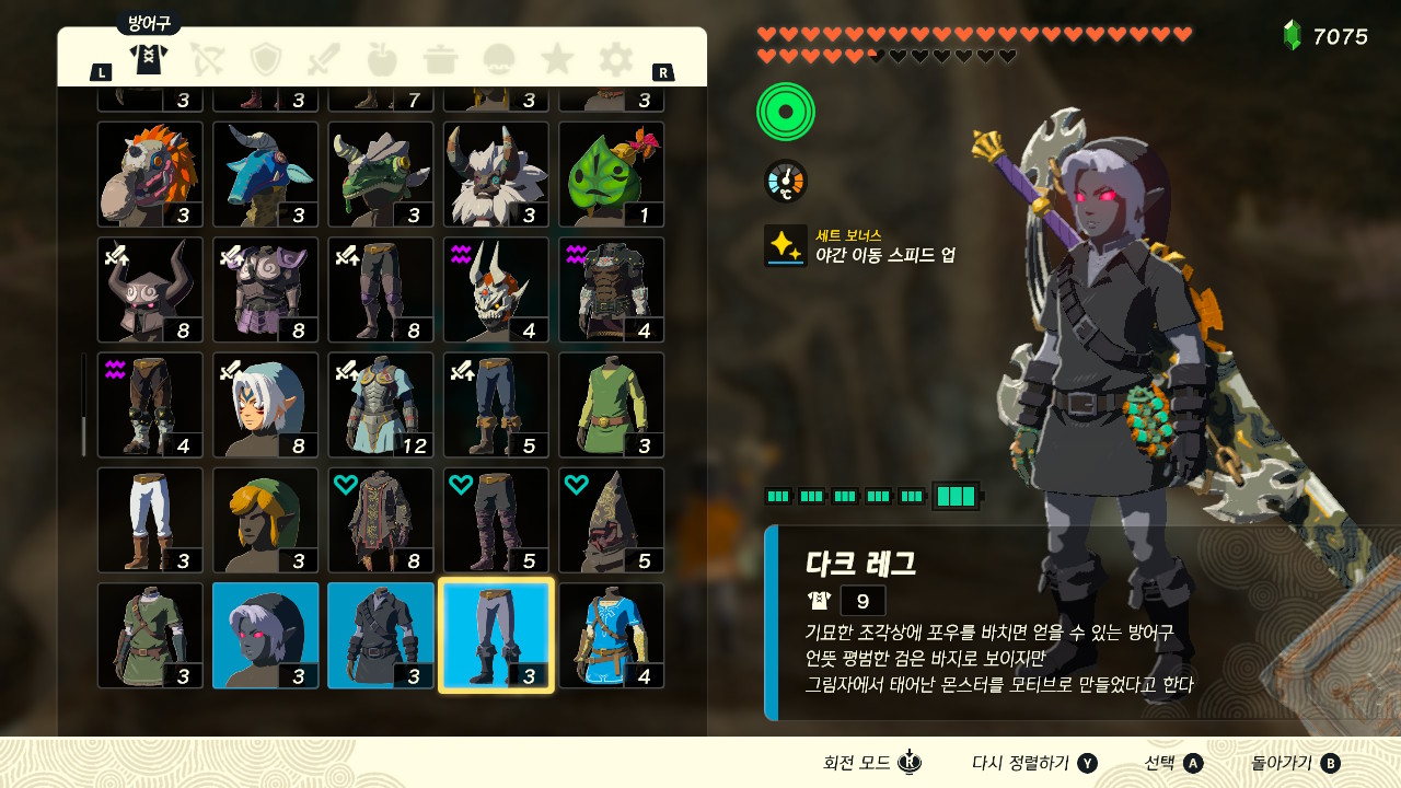 젤다의 전설 시리즈에 악역으로 등장하는 다크 링크를 본따 만든 세트입니다. 전작 야생의 숨결에서는 킬튼에게서 구매가 가능했습니다.