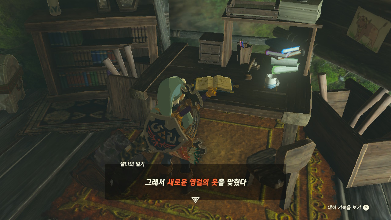 우물 밑으로 내려오면 젤다 공주의 일기를 읽을 수 있습니다. 호위로 따라오느라 링크의 옷이 너덜너덜해져서 새로운 영걸의 옷을 맞췄다는 내용입니다. 숨겨놨다는 왕좌의 방으로 이동합시다.