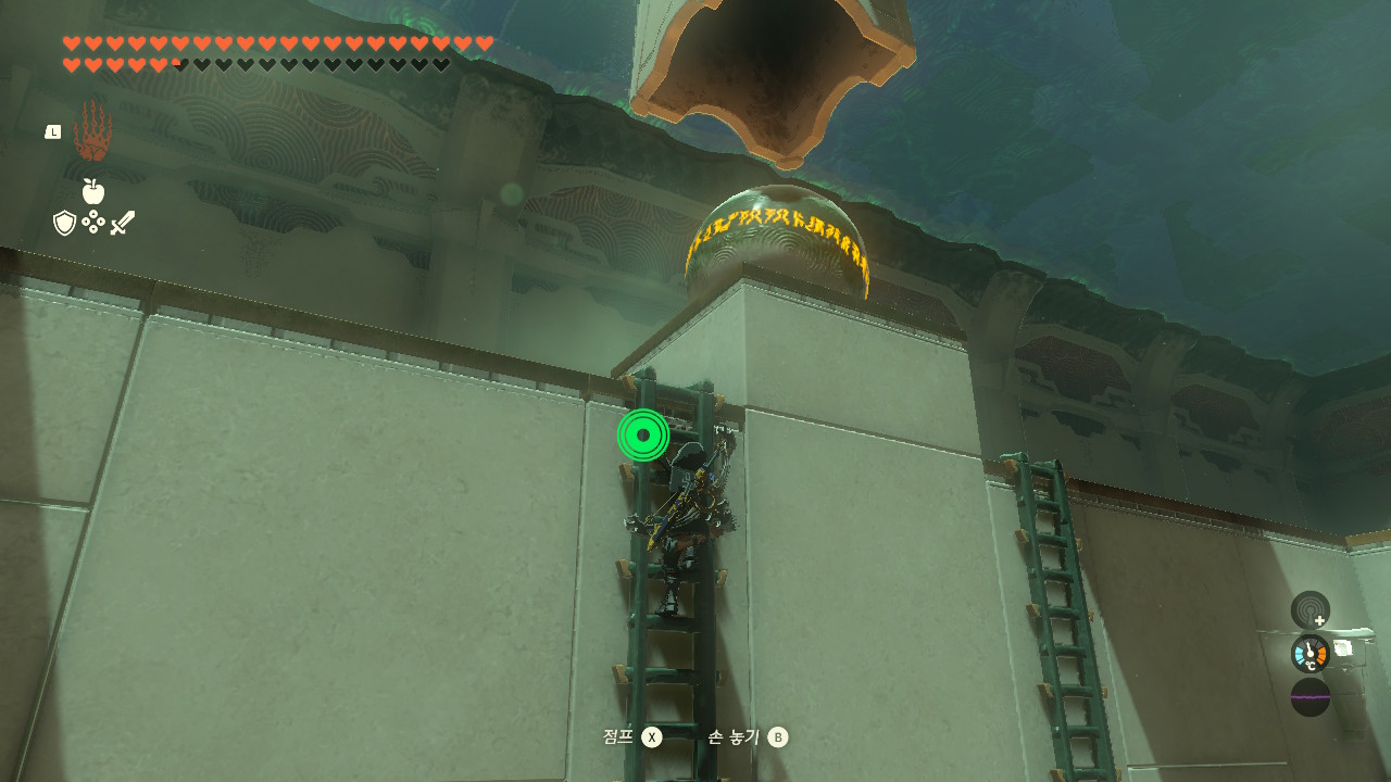 사다리를 타고 올라가 구슬이 있는 곳으로 이동해주세요.