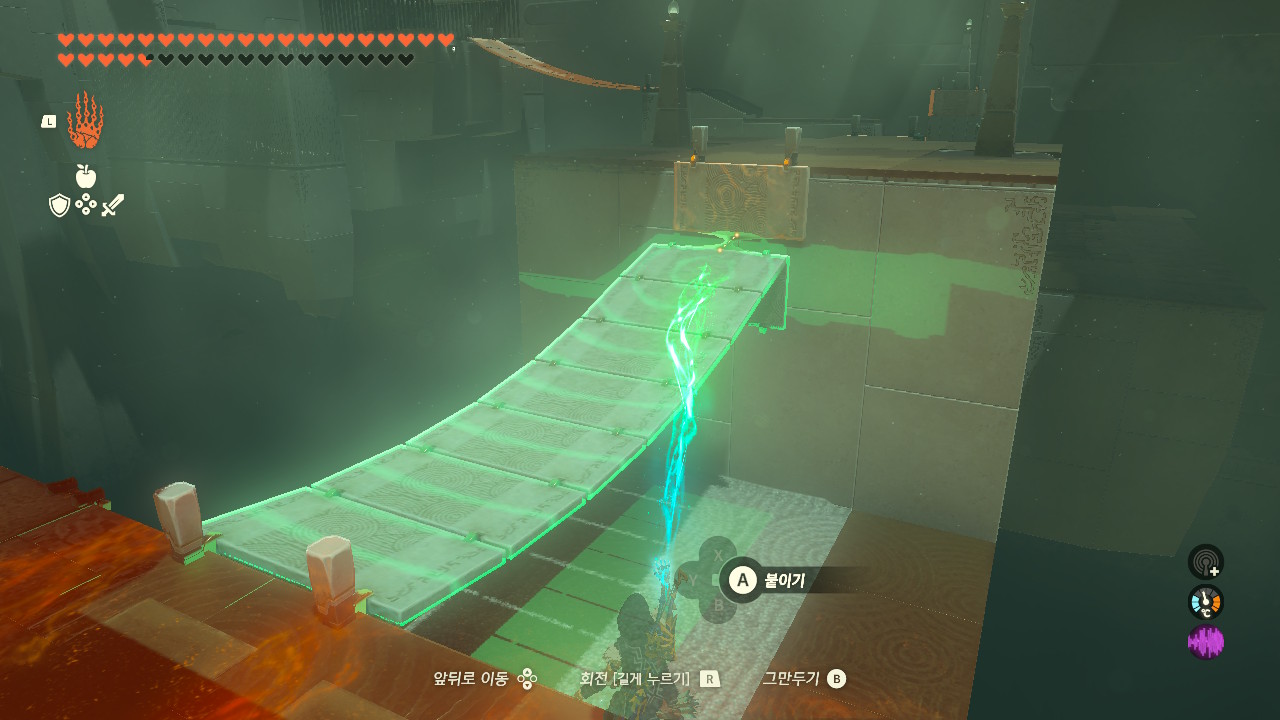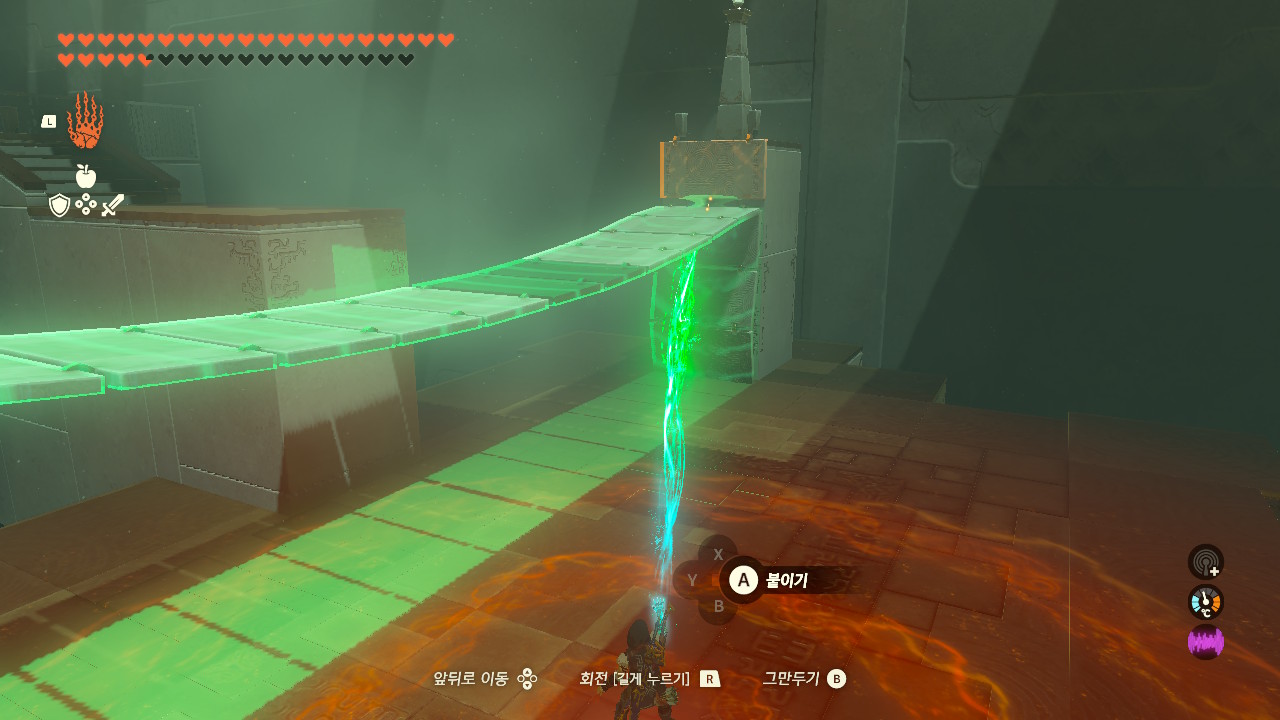 끊어져있는 다리들을 '울트라 핸드'로 붙여 지나가야하는 사당입니다.