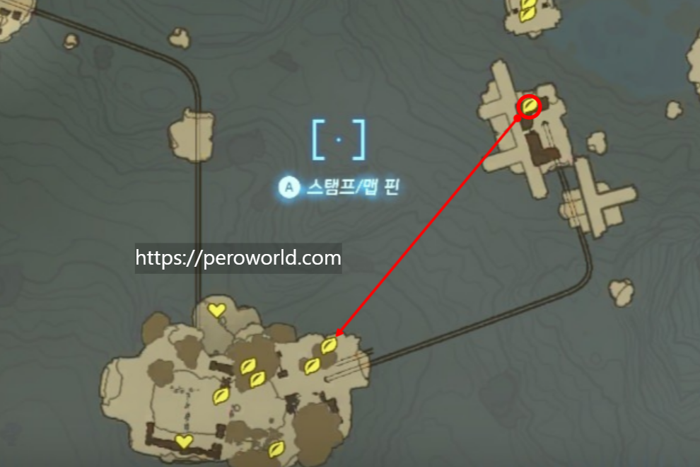 세 번째 구역에서는 해품이꽃 8개를 획득하실 수 있습니다. 하트 스탬프로 표시한 곳은 섬 지하에 위치해있다는 의미입니다. 참고로 지하로 내려가 가운데에서 트레루프할 경우 현자의 유지도 획득하실 수 있습니다.