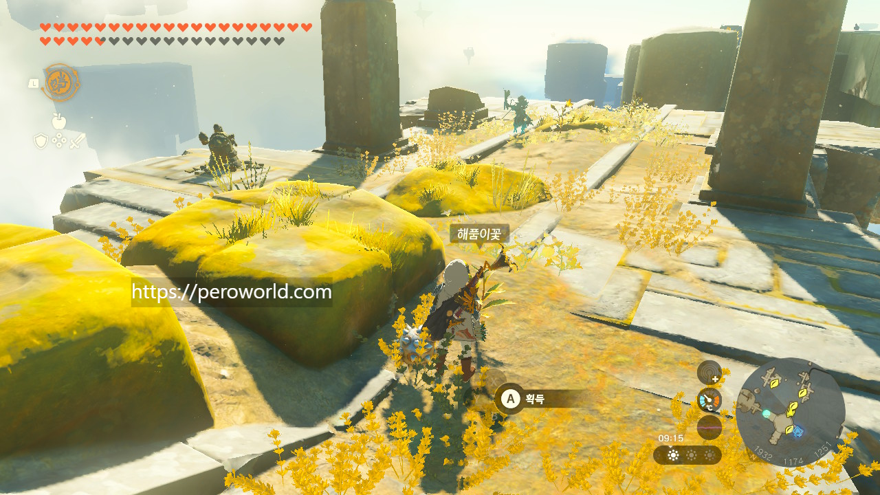 지상에는 중앙 하이랄, 하이랄 평원에서 해품이꽃을 파밍하실 수 있습니다. 그러나 아무래도 하늘섬에 많이 있는 소재기 때문에 지상에서 파밍하면 효율이 많이 떨어지기는 합니다.