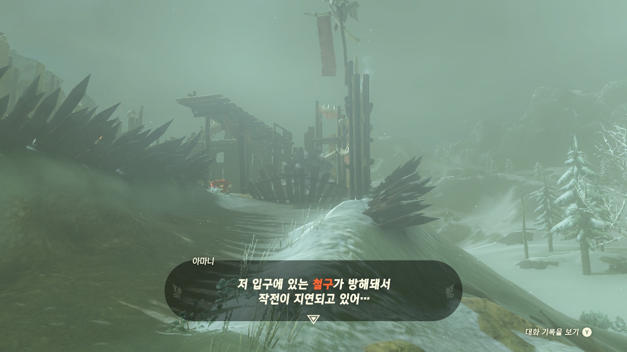 몬스터 거점 입구에 있는 철구가 방해돼서 작전이 지연되고 있다고 합니다.