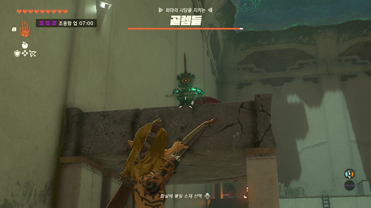 골렘을 잡고 나온 뿔을 스크래빌드해서 싸워주시면 더 쉽습니다.