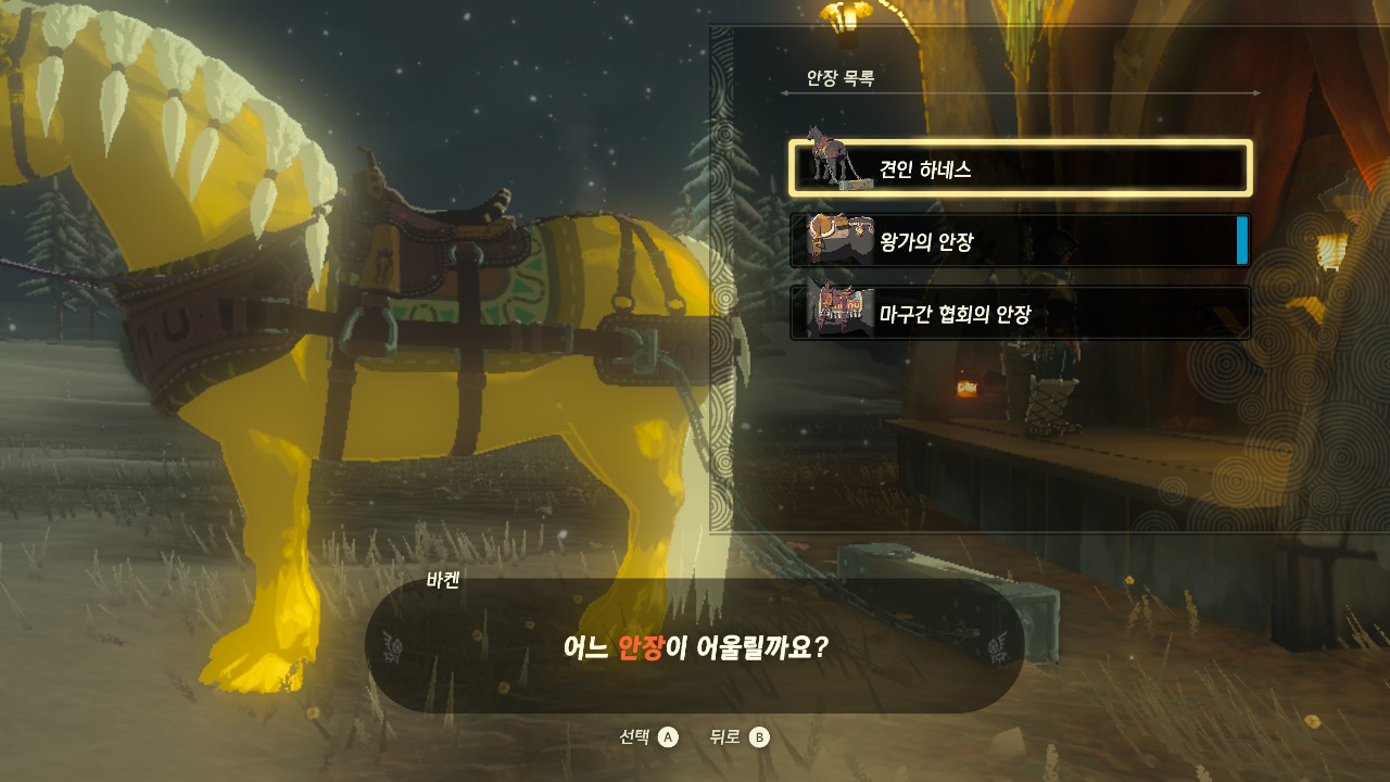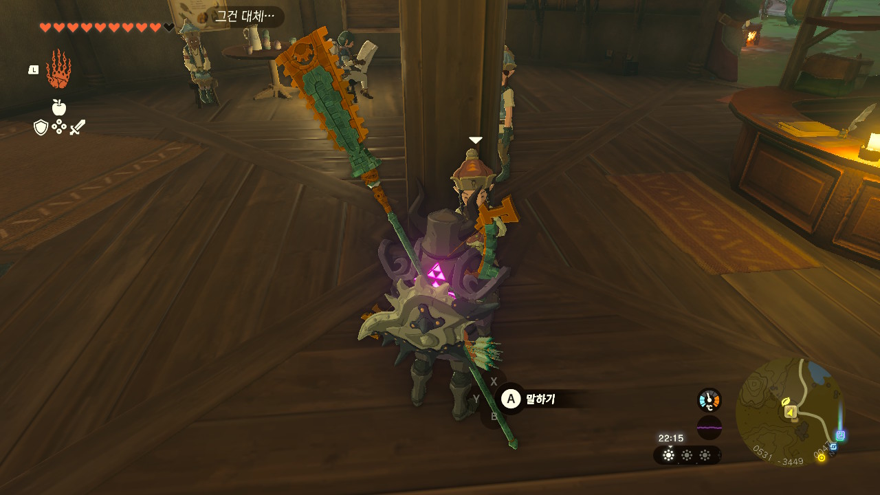 중앙 하이랄 북동쪽에 위치한 숲의 마구간으로 이동해 펜에게 말을 걸어줍니다.