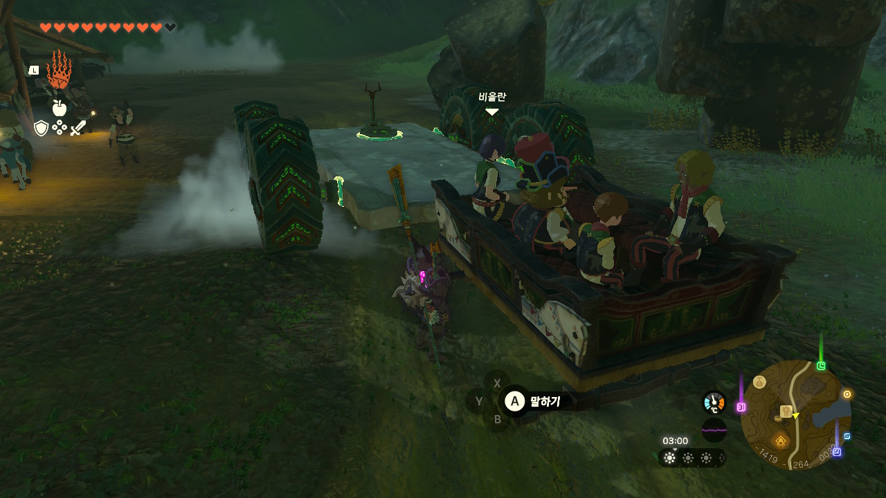 그 다음 미로얀에게 말을 걸면 악단에 수레에 타게됩니다.