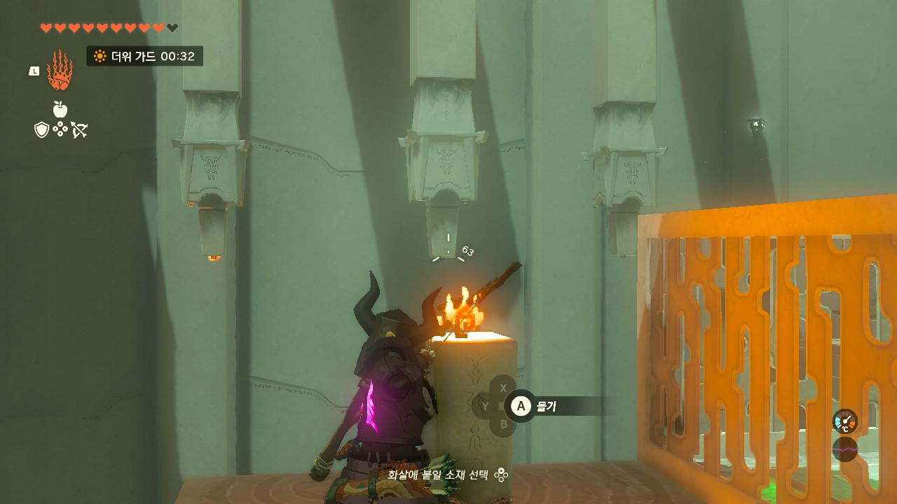 3개의 돌출구에 모두 불 화살을 맞춰주세요. 그럼 문이 열립니다.