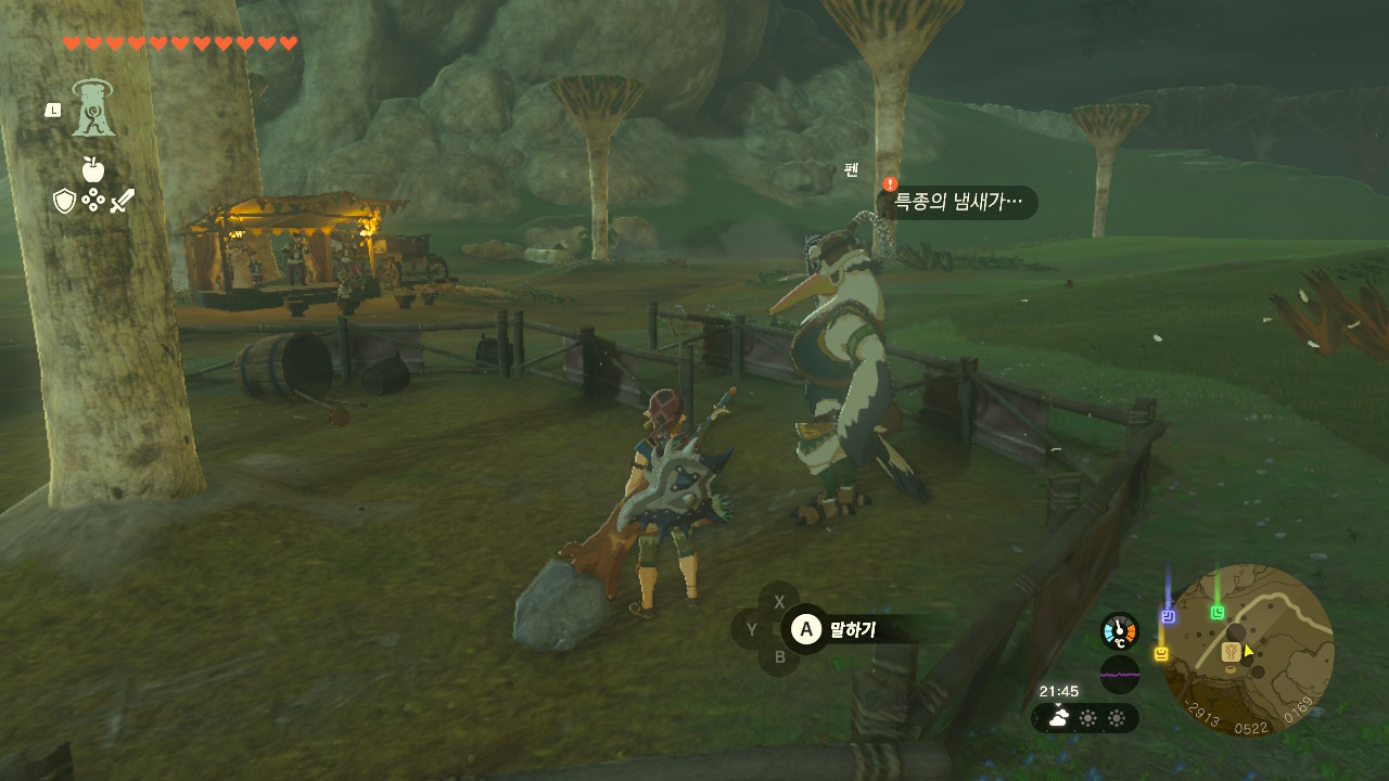 하이랄 평원 왼쪽에 위치한 평원 변두리의 마구간으로 이동해 펜에게 말을 걸어줍니다.