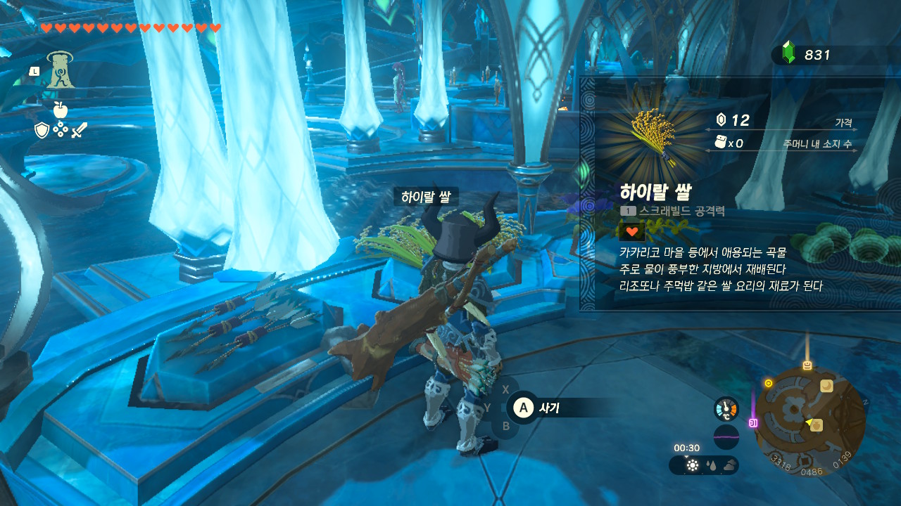 퀘스트를 깨기 위해서는 하이랄 쌀, 짐승의 고기, 암염이 한 개씩 필요합니다.