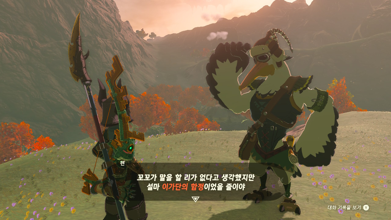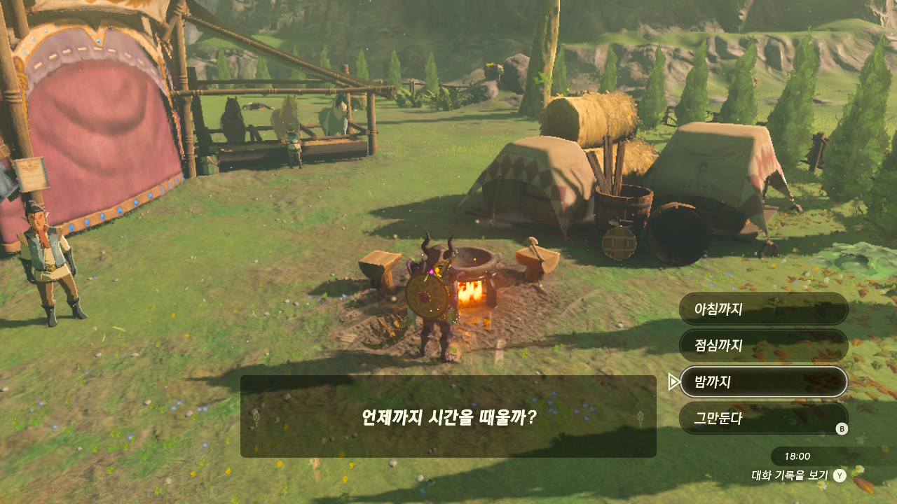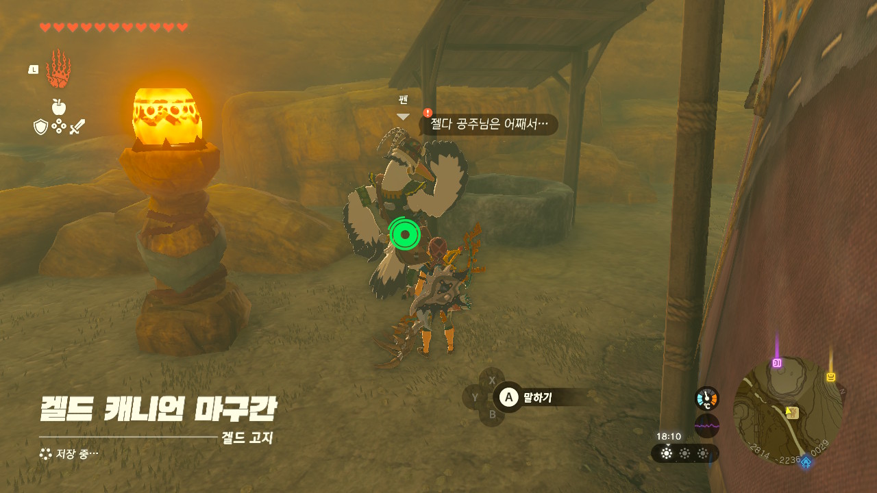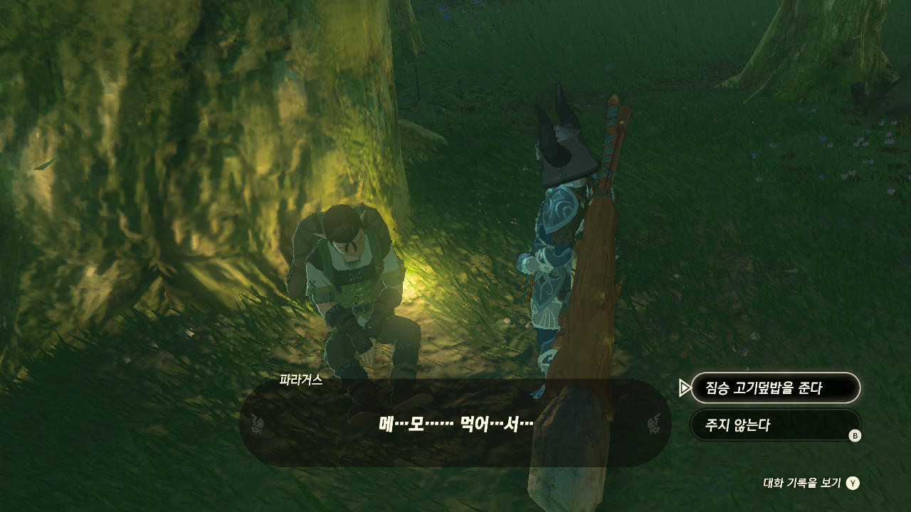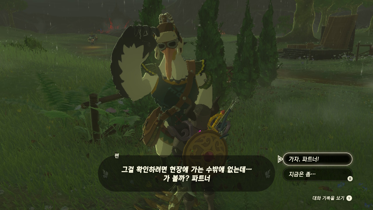 하이랄 평원 왼쪽에 위치한 평원 변두리의 마구간으로 이동해 펜에게 말을 걸어줍니다.