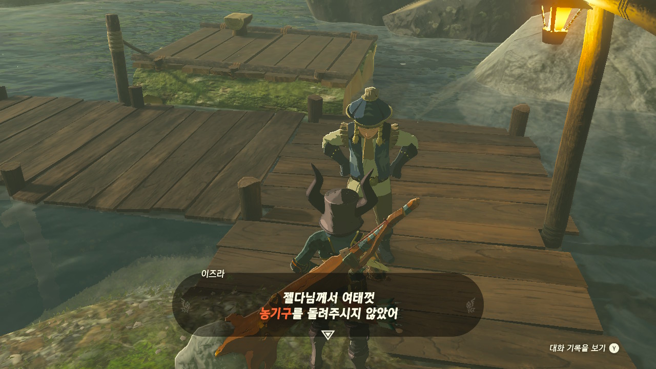 이후 강가로 이동해 이즈라에게 말을 걸면 젤다공주가 농기구를 돌려주지 않았다고 합니다.