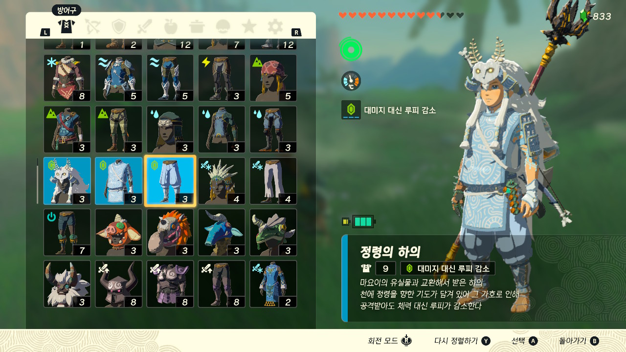 정령 세트를 입어주면 데미지 대신 루피가 감소합니다.