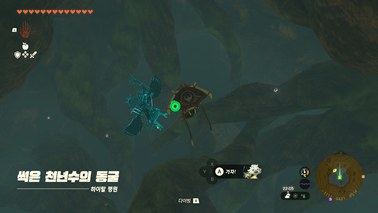 중앙 하이랄 왼편에 위치한 썩은 천년수의 동굴로 이동해줍니다.