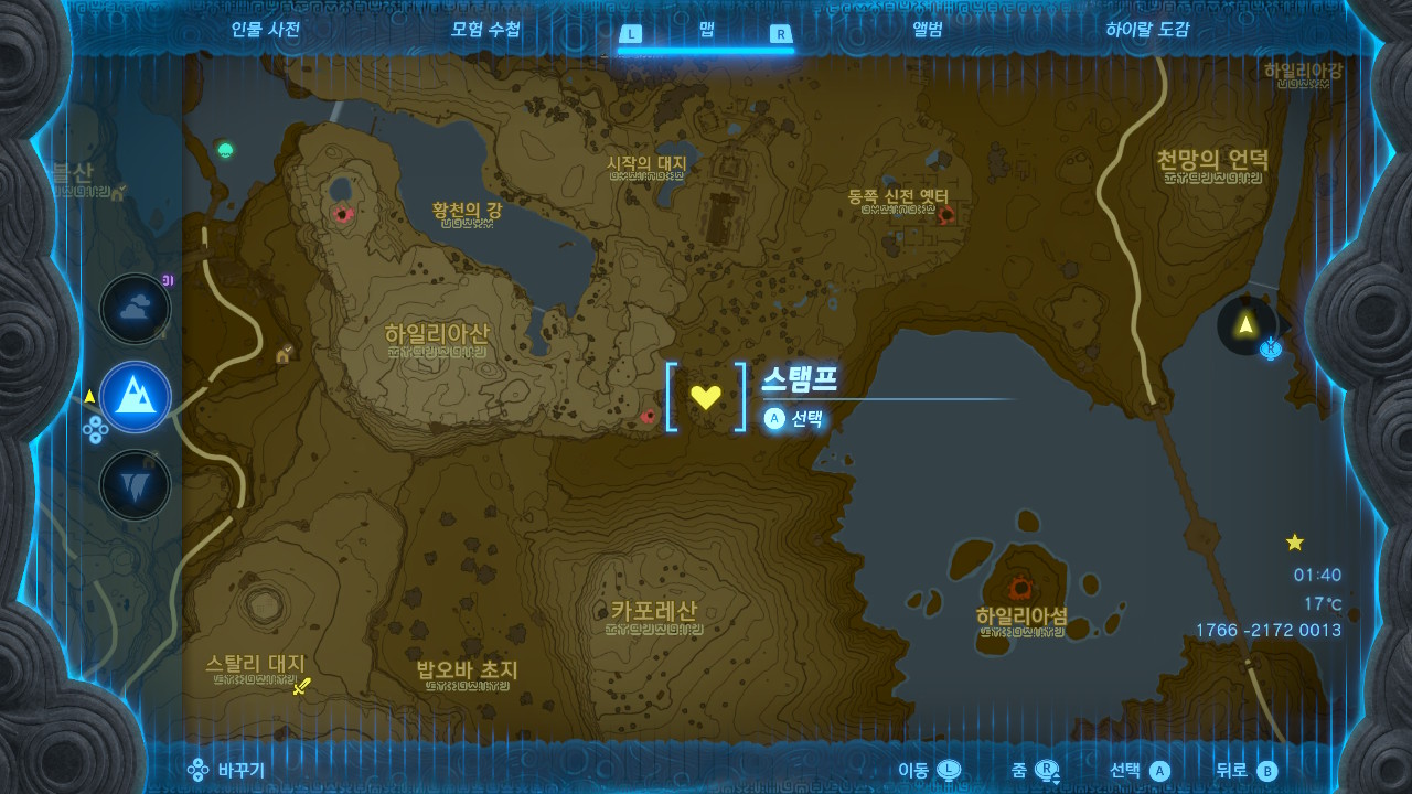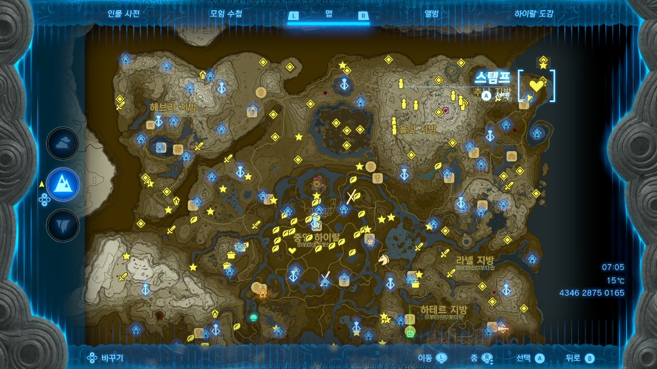 중앙 하이랄 아래쪽 하트 스탬프 위치로 이동해주세요.