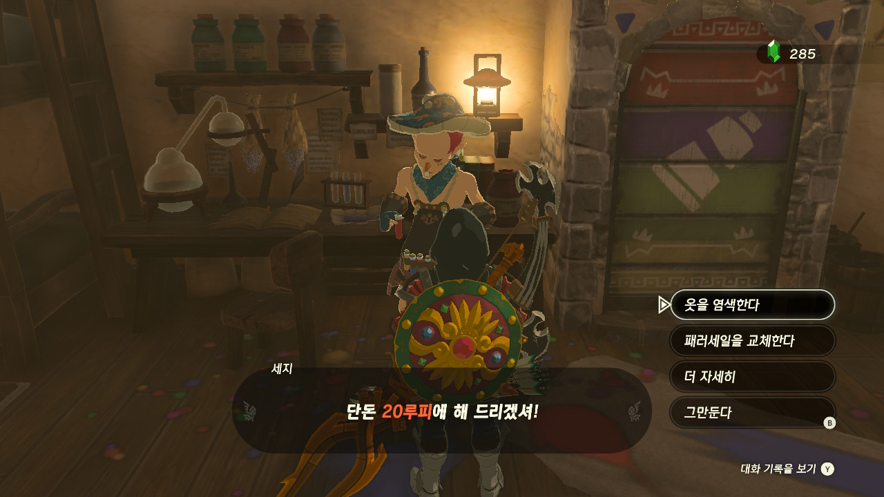 20루피를 내면 옷 염색 혹은 원단 교체를 해줍니다.